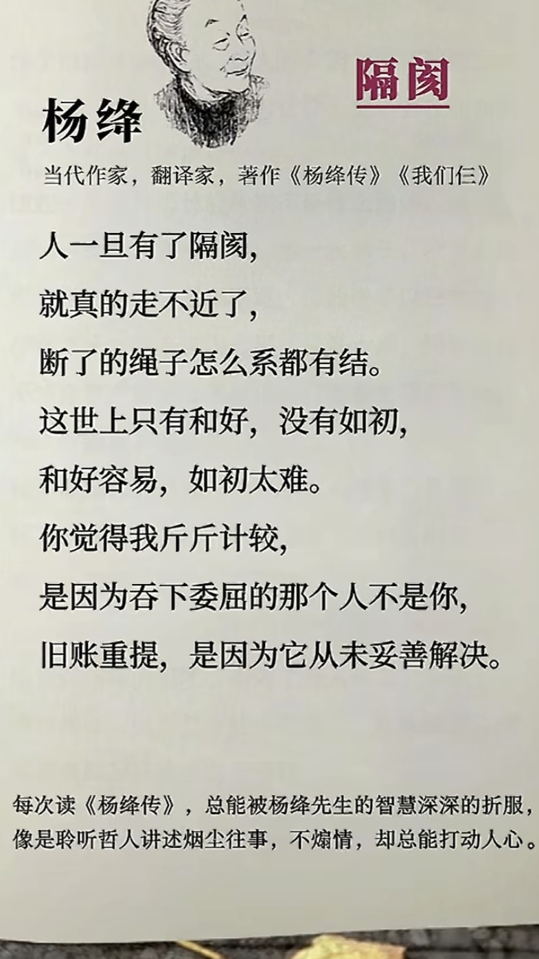 《杨绛传》里面的治愈名句(二) 抚琴居 04-08 1357 默认 摘要: ... 标签: 杨绛 杨绛传 哲理 治愈 海报 阅读 QQ 分享 微博分享 微信分享 分享 上一篇诗文作品《杨绛传》里面的治愈名句(一) 下一篇诗文作品《杨绛传》里面的治愈名句(三) 《杨绛传》里面的治愈名句(一)上一篇诗文作品 《杨绛传》里面的治愈名句(三)下一篇诗文作品 相关诗文 杨绛杨绛传哲理治愈 贪嗔痴慢疑 2025-11-21 众生赋 2025-11-21 吊带裙 邬霞 2025-05-22 绝美古风诗文(三) 2025-04-14 绝美古风诗文(二) 2025-04-14 绝美古风诗文(一) 2025-04-14 当白话遇上古诗文(九) 2025-04-14 当白话遇上古诗文(八) 2025-04-14