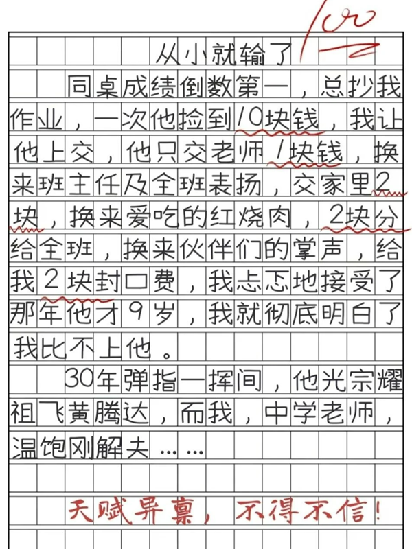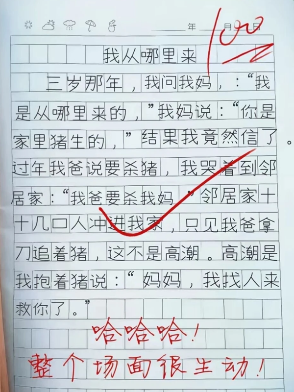 童言无忌 抚琴居 03-24 141 默认 摘要: ... 标签: 童言 搞笑 儿童 作文 海报 阅读 QQ 分享 微博分享 微信分享 分享 上一篇诗文作品绝版的周庄 王剑冰 没有诗文了点击这里返回网站首页看看吧 绝版的周庄 王剑冰上一篇诗文作品 相关诗文 童言搞笑儿童作文 人和鸡的区别 2025-04-06 遇见母亲,遇见美好 2024-11-29 一个哲学研究生的演讲 2024-09-04 我看到了一条河 2024-01-07 我交给你们一个孩子 2024-01-06 作文:有枇杷树真好 2023-12-19